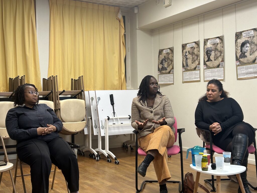 Sokhna Fall, dirigeante de l’association Femmes Entraide Autonomie (FEA) dans le 19ᵉ arrondissement de Paris, et Rana Hamra, fondatrice et directrice de l’association Humanity Diaspo, experte en innovation humanitaire et engagée dans la lutte contre la précarité hygiénique, menstruelle et infantile à travers la « Tech for Good », ont partagé leurs expériences.